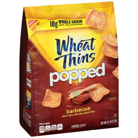 <b>Wheat Thins Barbecue Popped Chips:</b> <ul> <li>10g whole grain per 30-gram serving</li> <li>Delightfully tasty*NEW_LINE*</li> <li>24 chips for 130 calories</li> </ul>