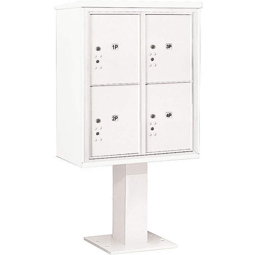 Salsbury 3410D-4PWHT | Pedestal Mailbox 4 Doors White 65-5/8 Inch | 33LX91 | Raptor Supplies Worldwide