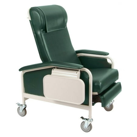 Clinical Recliner with Steel Casters Color: Hunter Green, Style: Heat, Massage, IV Pole at Left Rear