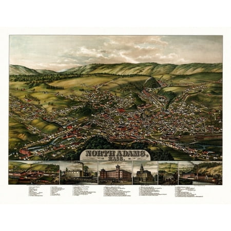 Vintage Map of North Adams Massachusetts 1881 Berkshire County was reproduced on the finest Canvas which captures all of the vivid colors and details of the original art. This museum quality Canvas Art was faithfully reproduced using ultra-precision print technology and fade-resistant archival inks on artist premium acid-free grade canvas. The overall size is 36 x 54 inches plus an additonal 1.5 inches of extra canvas on all 4 sides to allow for easy stretching and/or framing. This premium rolled Canvas Art is ready for stretcher bars or custom framing. <br /> <br /> <ul> <li>Brand New and Rolled and ready to stretch or frame</li> <li>Canvas Art Title: Vintage Map of North Adams Massachusetts 1881 Berkshire County</li> <li>Canvas Size: 36.00 x 54.00 inches plus an additional 1.5 inches of extra canvas on all 4 sides to allow for easy stretching and/or framing</li> <li>Licensor: KJA Posters</li> <li></li> </ul>