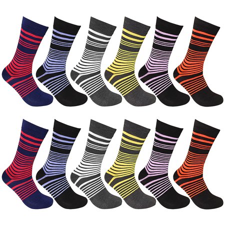 12 Pairs Assorted Colors Striped Men Dress Socks Size 10-13