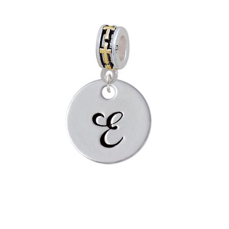 Large Silver Tone Script Letter - E - 3/4'' Disc - Gold Tone Cross Charm Bead Hanger. Silver Tone Charm Initial is approximately 3/4'' long. Charm Hanger Bead is approx. 15x6x10 mm (HxWxD) Hole size 5.5 mm. Our Charm Beads are compatible with most Charm Bead Bracelets. Also makes a great charms pendant. Featured charms is an exclusive Delight & Co. design. We are a family owned company for over 35 years in the U.S.A. PLEASE NOTE: Our products are lead safe, but are not intended for children 14 years and younger.