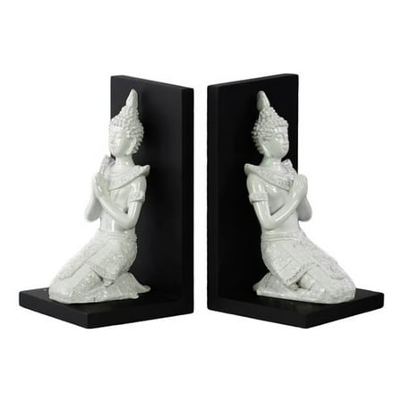 URT8972 <br /> <b>Features</b> <br /> <ul> <li>Set includes 2 bookends</li> <li>Comes with pointed ushnisha in anjali mudra and base</li> <li>Product Type: Decorative</li> <li>Style (Old): Asian</li> <li>Subject: People</li> <li>Theme: Religious</li> <li>Primary Material: Resin</li> <li>Life Stage: Adult</li> <li>Number of Bookends: 2</li> </ul> <br /> <b>Dimensions</b> <br /> <ul> <li>Overall Height - Top to Bottom: 7.25"</li> <li>Overall Width - Side to Side: 4"</li> <li>Overall Depth - Front to Back: 4"</li> <li>Overall Product Weight: 2.2 lbs</li> </ul>