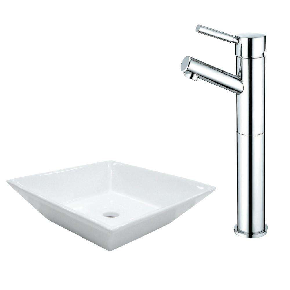 Kingston Brass EV4256KS8411DL Vessel Sink and Faucet Combo, 16-9/16inch (L) x 16-9/16" (W) x 4-7/8" (H), White