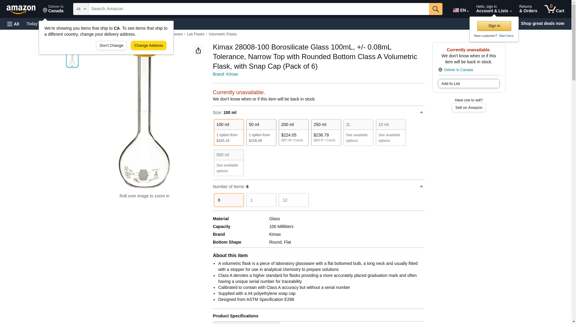 Kimax 28008-100 Borosilicate Glass 100mL, +/- 0.08mL Tolerance, Narrow Top with Rounded Bottom Class A Volumetric Flask, with Snap Cap (Pack of 6)
