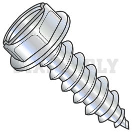 Self-Tapping Screw - Type A - Slotted Indented Hex Washer Head - 7/16" A/F - Zinc Plated Steel - 5/16"-9 Thread - 3" Long
