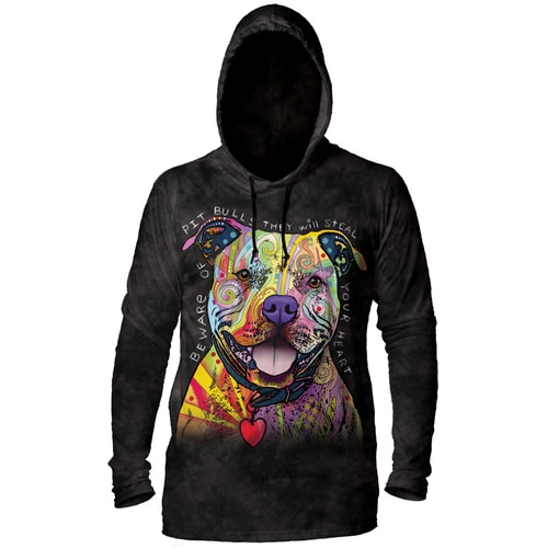 The Mountain 49379607384 Grey Beware of Pit Bulls Adult T-Shirt Hoodie - 2XL