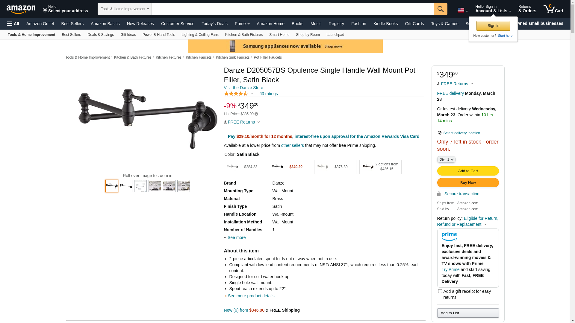 Danze D205057BS Opulence Wall Mount Pot Filler, Satin Black
