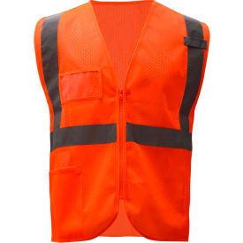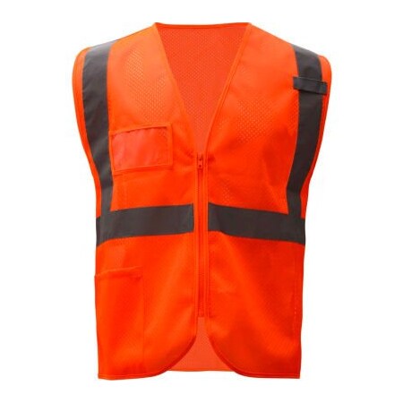 GSS Safety Standard Class 2 Mesh Zipper Safety Vest-Orange-4XL/5XL