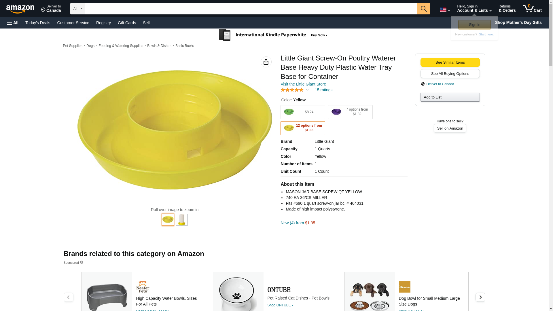 Screw On Poultry Water Base - 1 Quart Color: Yellow
