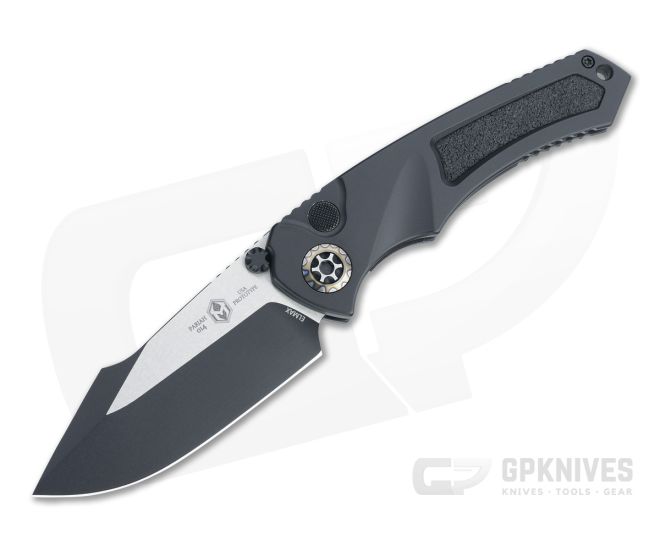 Heretic Knives Pariah Proto Two-Tone Black Elmax Dual Action Liner Lock Automatic Knife For Sale