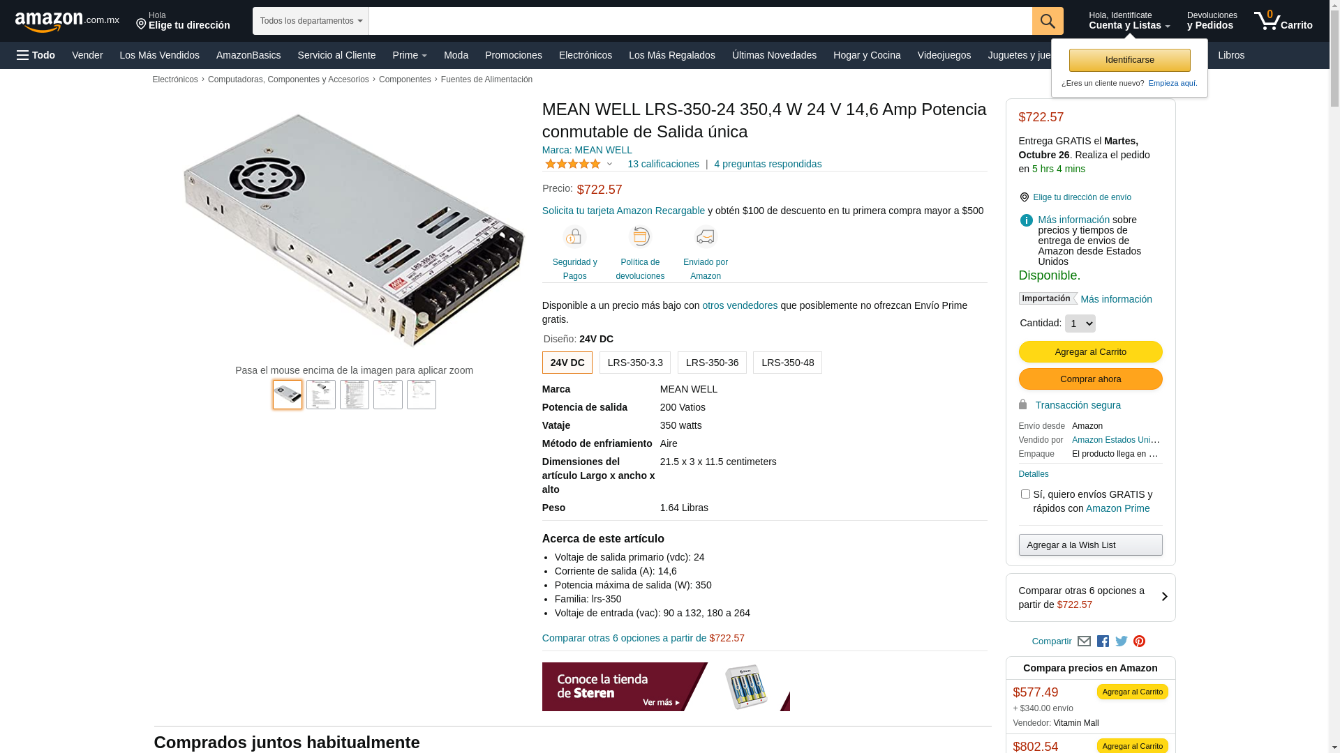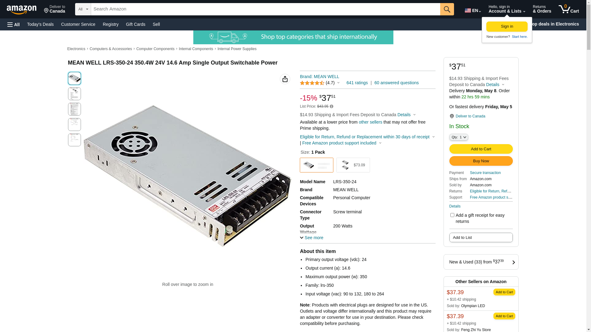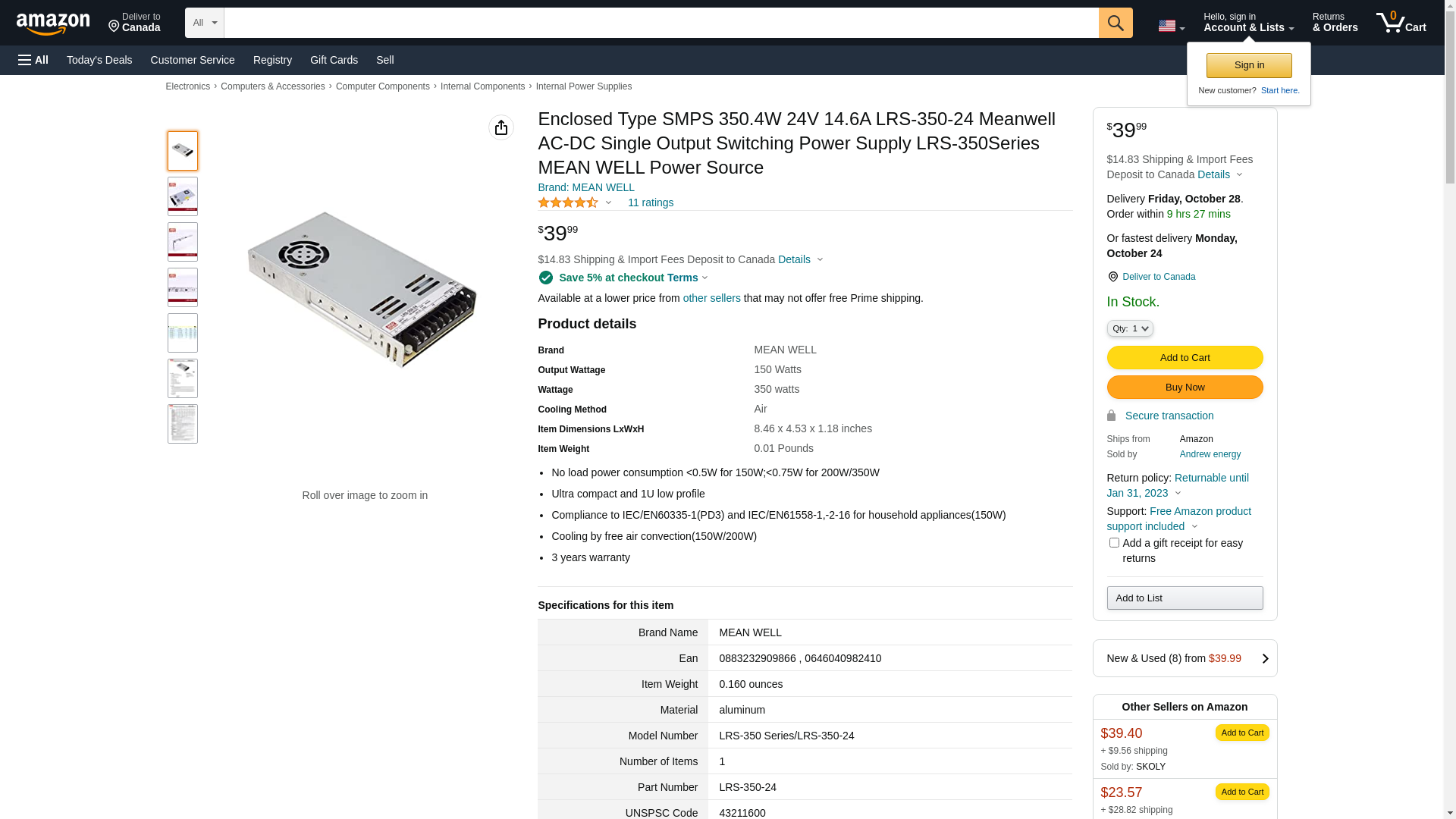 ![]() powersupplymall.com | LRS-350-24 | 1 | 9407 | 1 | 1 @ $30.95 |