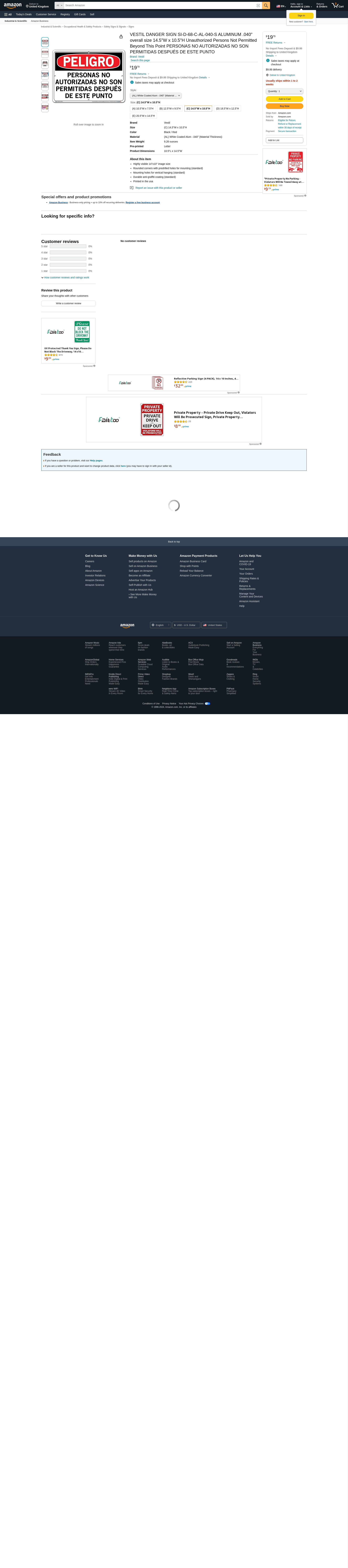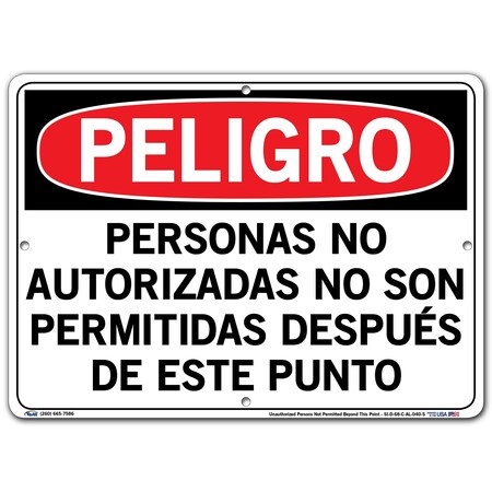 VESTIL DANGER SIGN SI-D-68-C-AL-040-S ALUMINUM .040" overall size 14.5"W x 10.5"H Unauthorized Persons Not Permitted Beyond This Point PERSONAS NO AUTORIZADAS NO SON PERMITIDAS DESPUÉS DE ESTE PUNTO