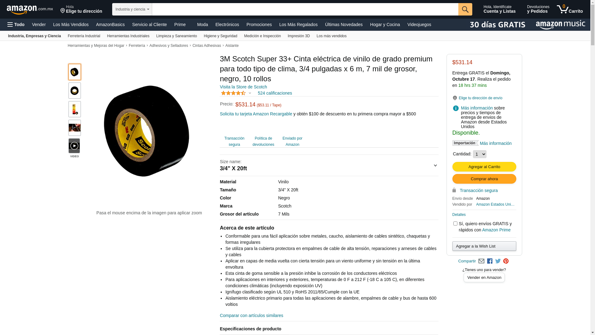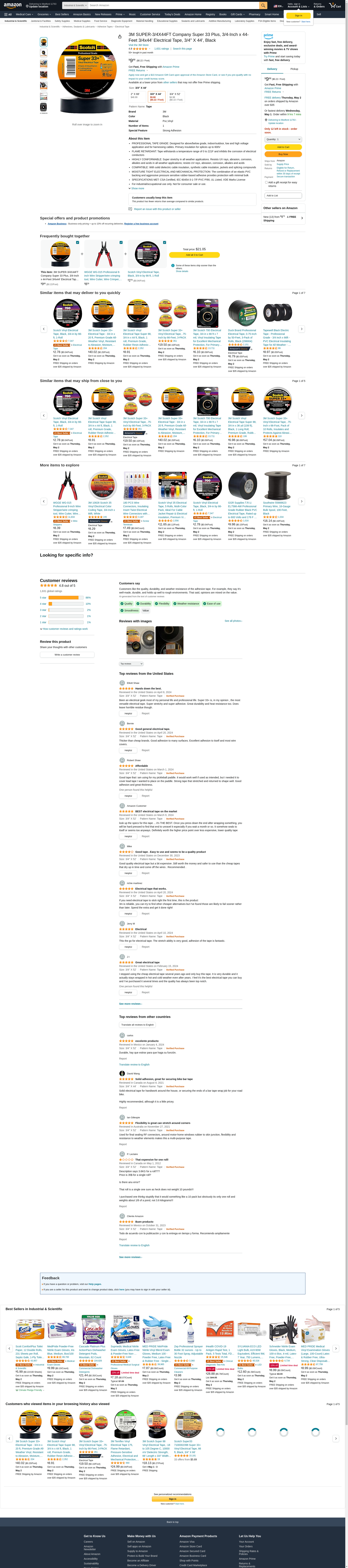 Scotch(R) Super 33+(TM) Vinyl Electrical Tape, 3/4 in x 44 ft (19 mm x 13,4 m)