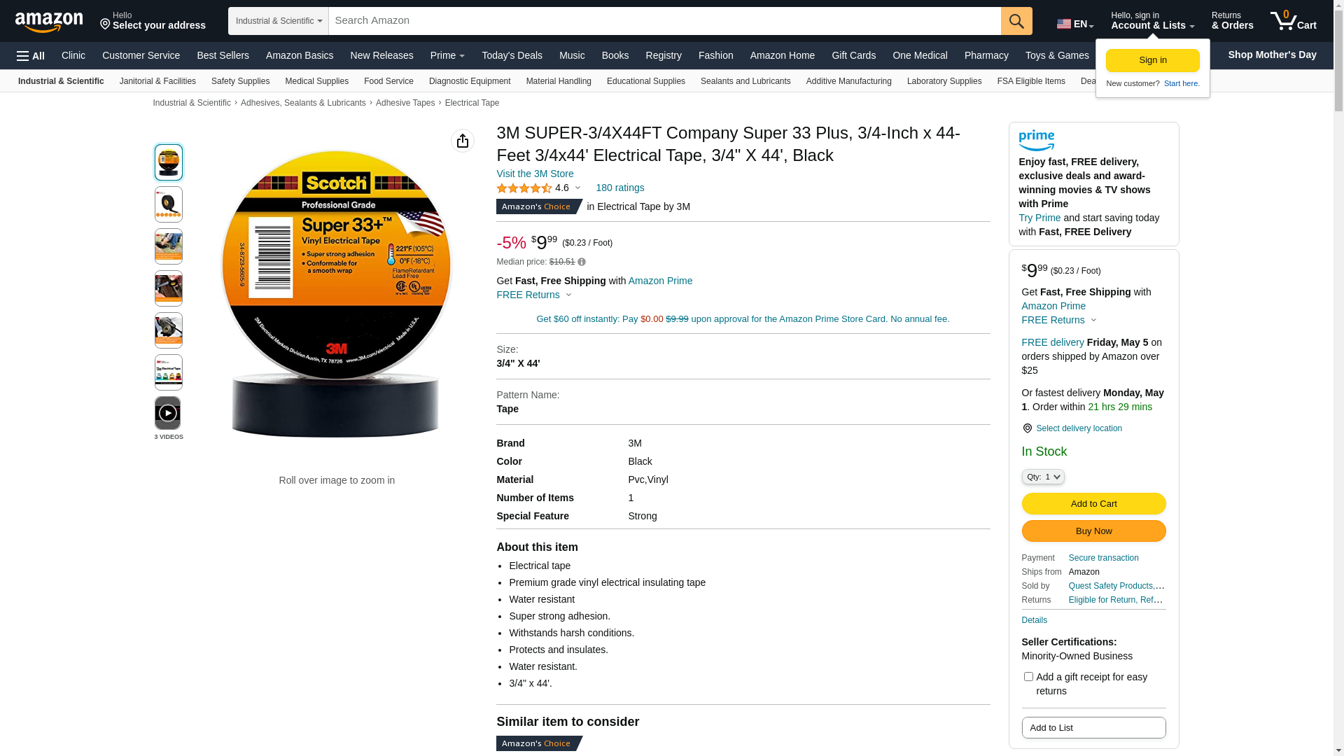 3M (33+SUPER-3/4X44FT) Super 33+(TM) Vinyl Electrical Tape, 3/4 in x 44 ft (19 mm x 13,4 m) [You are purchasing the Min order quantity which is 100 Rolls]