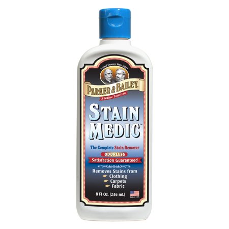 <b><br />Parker Bailey Stain Medic, 8 oz</b> <br /> <ul> <li>Complete stain removal from carpets and fabrics</li> <li>Works also on coffee, tea, blood, pet stains, grass stains and more</li> <li>Simply apply, blot with a dry white cloth</li> <li>Odorless, non-toxic and environmentally safe</li> <li>Use as a laundry prewash for a brighter cleaner load</li> <li>Fast acting</li> <li>8 oz stain remover bottle</li> </ul>