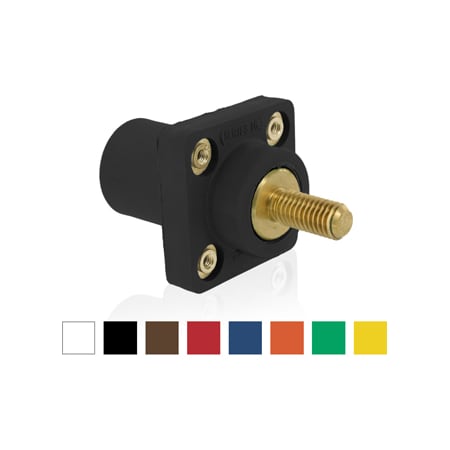 Leviton 16R25-1UE 16 Series Male Panel Receptacle, Cam-Type, Self-Clinching Nut, 90-Degree, Threaded Stud Length-1.125", Taper Nose, 400 Amp Max, Cable Range-#2 to 4/0 AWG, Black