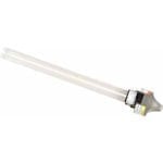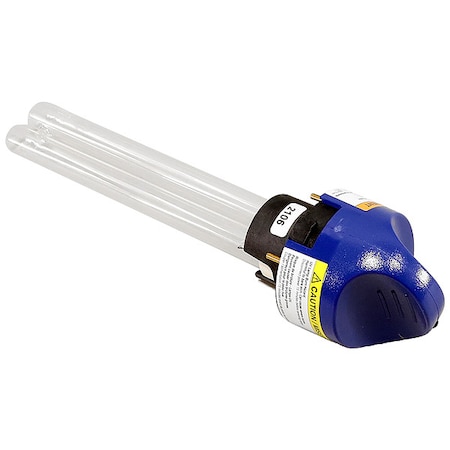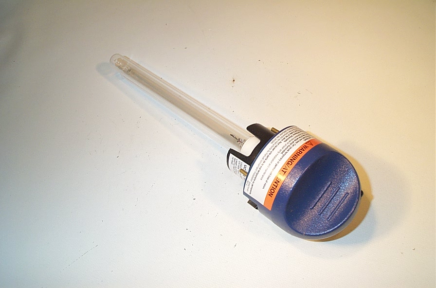 Original Factory Replacement (UC100E1006) UV Bulb for Honeywell UV Germicidal Lamp - 18 Watt SnapLamp knob and bulb assembly. With this knob/lamp assembly, future lamp replacement will require only the new lamp (UC18W1004) as the lamp itself is removeable. Fits:Model UV100E1043 Single-Lamp Reurn Air Unit. Older Model UV100A1000 Return Air UnitReplaces UC100A1005 - (same bulb, blue handle rather than tan). Overall bulb length is 8½ inches, glass length measures 7½ inches. The bulb has has two glass tubes fused together and two filaments, each tube is ¾" in diameter.