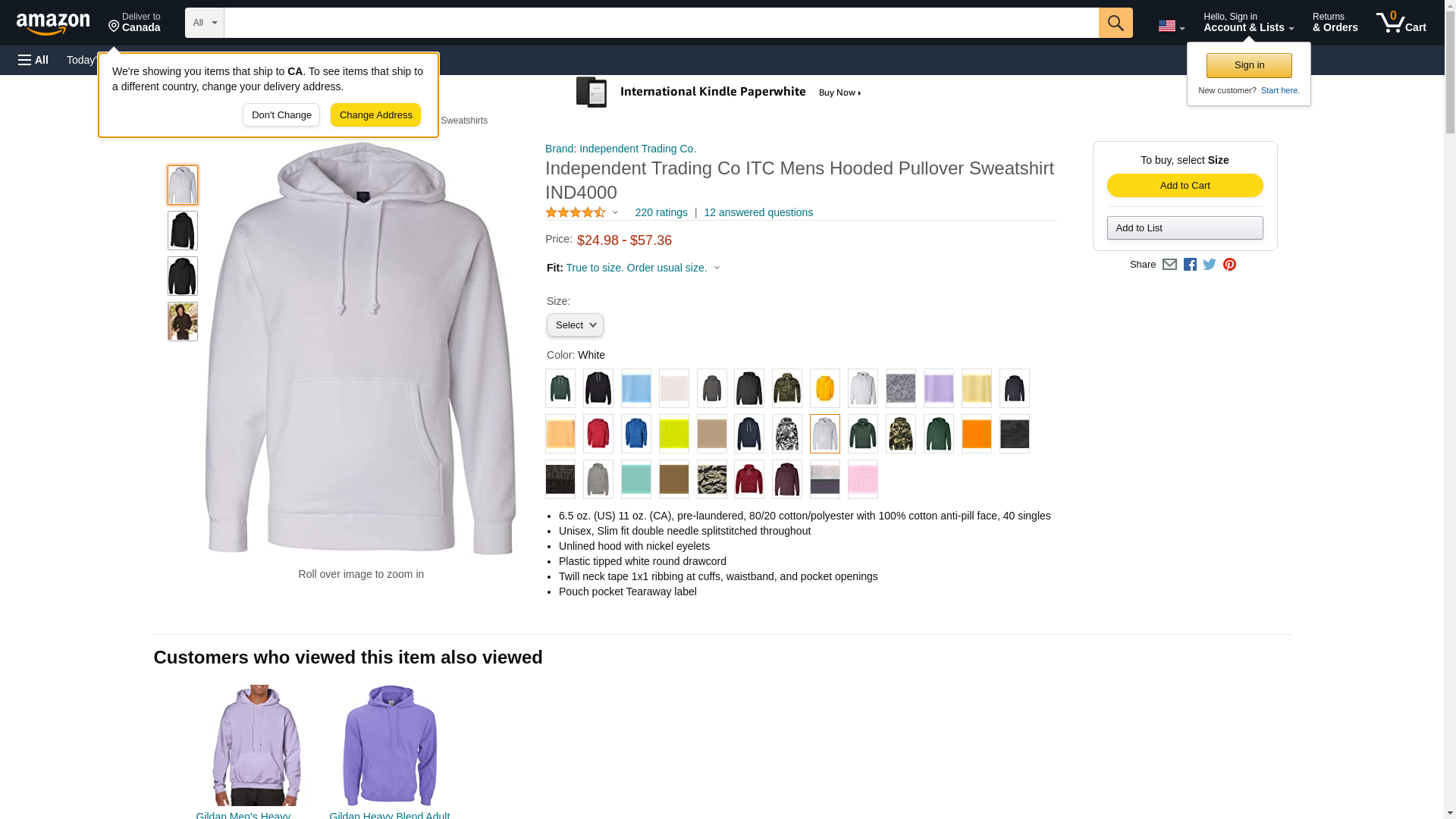 Independent Trading Co. mens Hooded Pullover Sweatshirt (IND4000) White XS