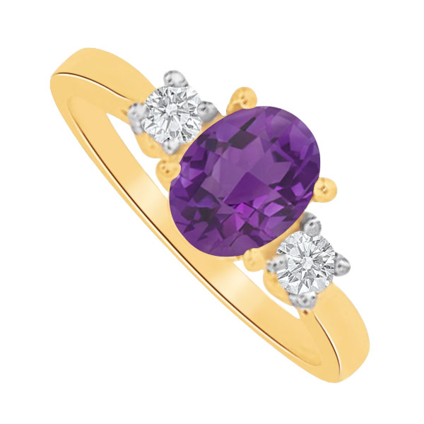 Fine Jewelry Vault UBNR83133Y148X6CZAM Amethyst & CZ Three Stone Engagement Ring - 1.5 CT TGW , 2 Stones