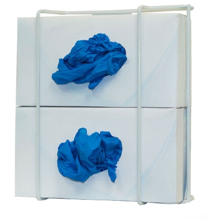 Glove Box Dispenser - Double Two eaches per pack Holds two boxes of gloves Slotted holes for vertical or horizontal wall mounting White Coated-Wire Made in China