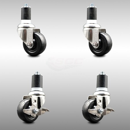 Service Caster Brand 3.5 Inch 316 Stainless Steel Light Duty Expanding Stem Caster Set of 4 Soft Rubber Caster Wheels and 1-3/4” Stems–800lbs. Total Cpty –2 Swivel/2 Swivel Casters with Locking Brakes