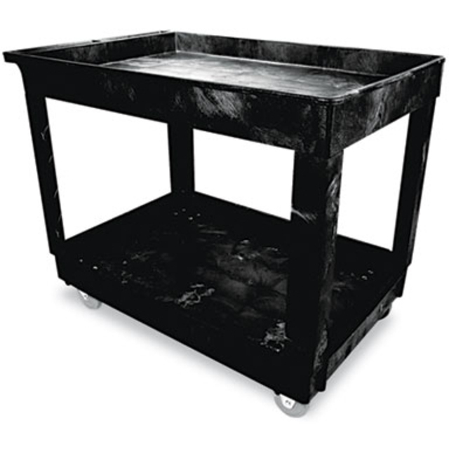 RUBBERMAID® ECONOMICAL TRAY SHELF PLASTIC CARTStock cart handles a wide variety of order picking and material handling needs in factories, hospitals and labs.Made with structural foam plastic for long, rugged useLeak-proof top shelf and rounded corners for safetyTwo 2-3/4 " deep shelves with 18-7/8" clearance between shelvesEasy to maneuver using a molded-in push handle and 4" non-marring rubber casters (2 swivel, 2 rigid)Assembles easily, Lot of 1