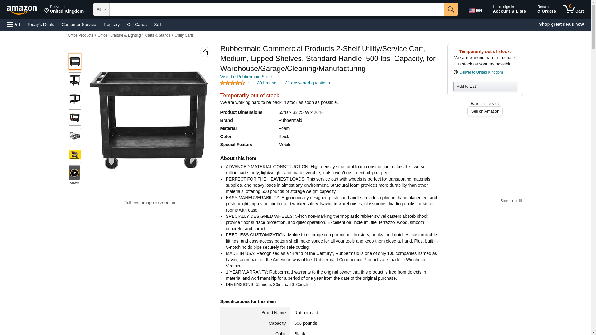 Rubbermaid FG9T6700BLA Cart, Utility Utility Cart 2 shelves 300 lb. capacity - C
