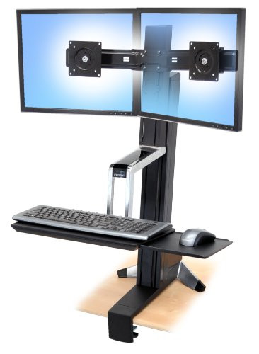 Ergotron – WorkFit-S Dual Monitor Standing Desk Converter, Sit Stand Workstation for Tabletops – No Worksurface, Black