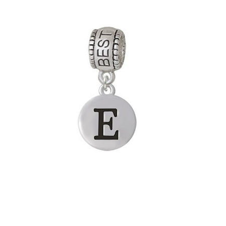Capital Letter - E - Pebble Disc - Best Friend Charm Bead Hanger. Charm. Charm size is approx. 0.59 x 0.50 x 0.09 inches (HxWxD) including loop. Charm Hanger Bead is approx. 13x10x8 mm (HxWxD) Hole size 5.5 mm. Our Charm Beads are compatible with most Charm Bead Bracelets. Also makes a great charms pendant. Featured charms is an exclusive Delight & Co. design. We are a family owned company for over 35 years in the U.S.A. PLEASE NOTE: Our products are lead safe, but are not intended for children 14 years and younger.