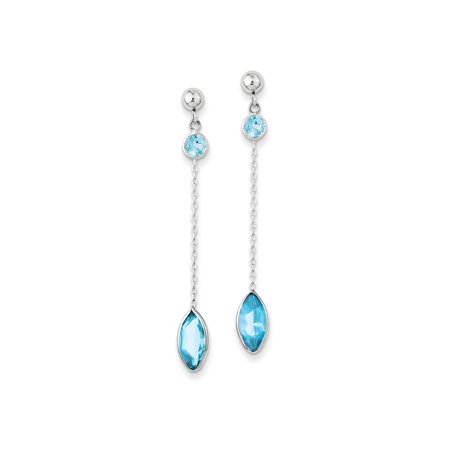 Genuine 14k White Gold - Appx 1.06 gr <br />Item Size: 47x5 mm <br />30 Day Hassle Free Returns <br />100% Satisfaction Guarantee <br />Bezel, Blue topaz, Genuine, Kidney wire, Polished