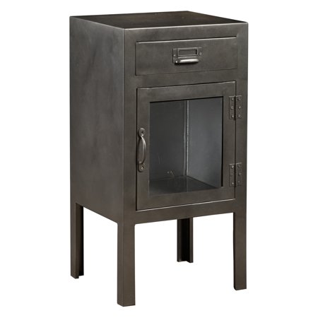 <ul><li>Additional limited-time savings reflected in current price</li><li>Dimensions: 18W x 16D x 36H in.</li><li>Glass and iron material</li><li>Gray finish</li><li>1 drawer and 1 door</li><li>Glass insert for storage</li><li>No assembly required</li><li>Handmade it</li></ul>