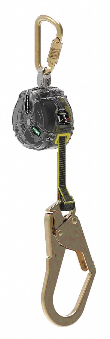 MSA 63013-00F V-TEC Personal Fall Limiter - 10' (3m), Single-Leg, 36CL Snaphook Anchorage Connection, Steel Carabiner Harness Connection, Retractable Web Lanyard