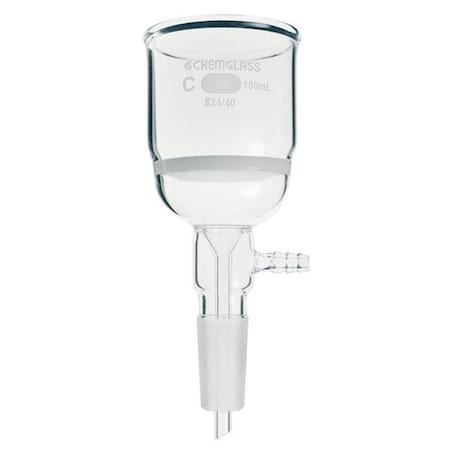 Chemglass CG-1406-26 Series CG-1406 Buchner Filter Funnel, 24/40 Inner Joint Lower Vacuum Assembly, Fine Frit, 350 mL Capacity
