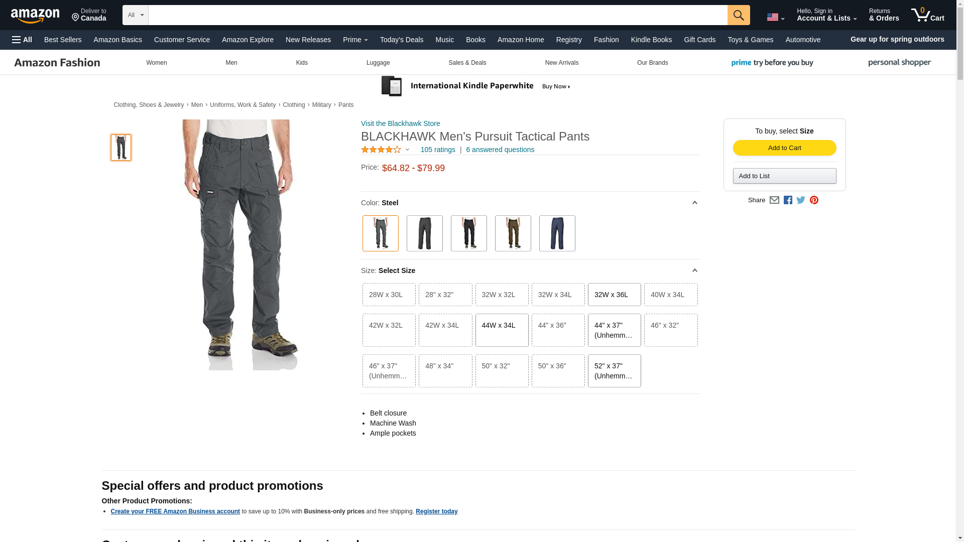BLACKHAWK Men's Pursuit Tactical Pants, 36" x 30", Steel
