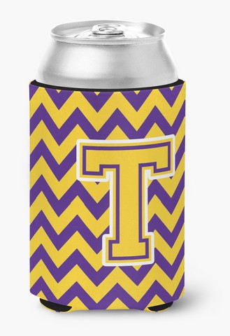 Carolines Treasures CJ1041-TCC Letter T Chevron Purple & Gold Can or Bottle Hugger, 0.25 x 4 x 5.5 in.