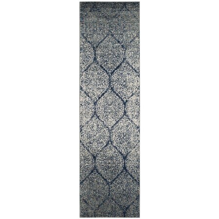 SAFAVIEH Madison Collection Runner Rug - 2'3" x 10', Navy & Silver, Glam Ogee Trellis Distressed Design, Non-Shedding & Easy Care, Ideal for High Traffic Areas in Living Room, Bedroom (MAD604G)