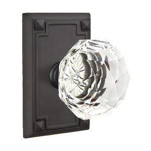 Crystal Door Hardware Collection - Diamond Passage Door Knob with Arts & Crafts Rectangular Rose in Flat Black by Emtek - 5105CKUS19238 | MyKnobs