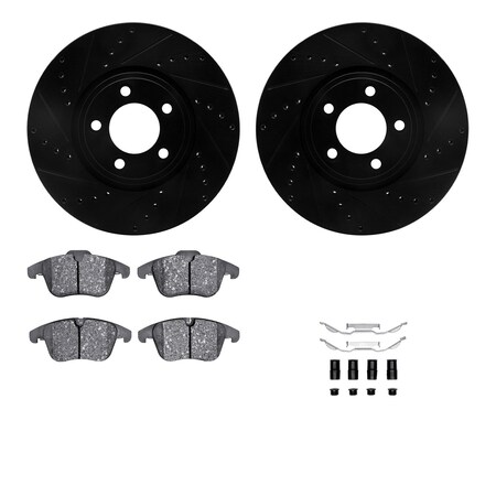 8512-20018, Rotors-Drilled and Slotted-Black w/ 5000 Advanced Brake Pads incl. Hardware, Zinc Coated