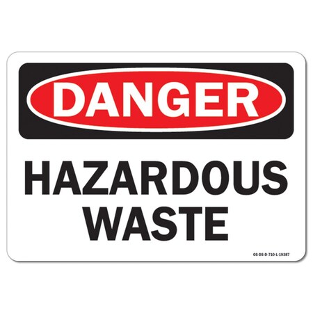 OSHA Danger Decal, Hazardous Waste, 5in X 3.5in Decal, 10PK