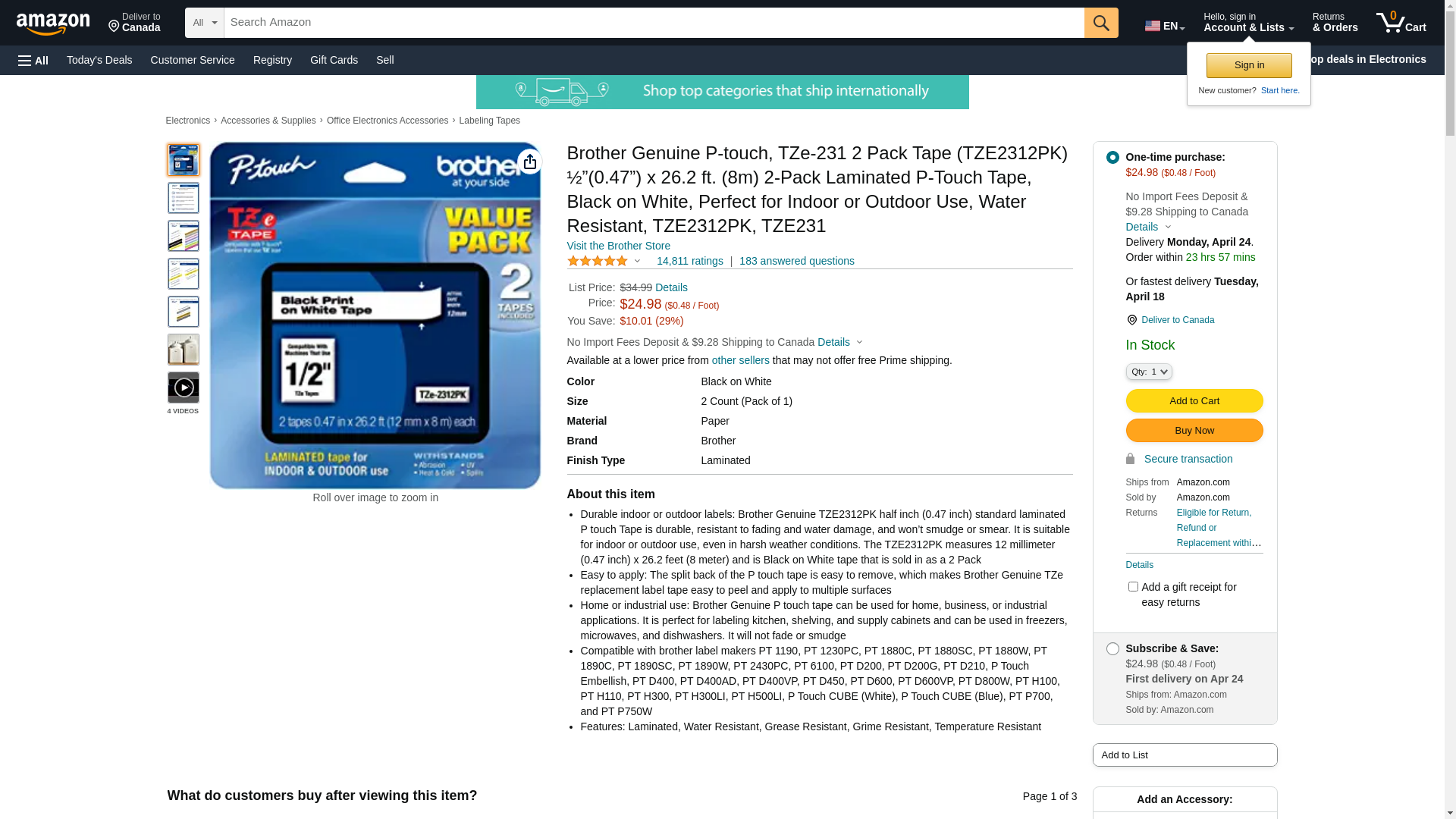| Feature | "DURABLE INDOOR OR OUTDOOR LABELS - Brother Genuine TZE2312PK half-inch (0.47-inch) standard laminated P-touch Tape is durable, resistant to fading and water damage, and won't smudge or smear. It is suitable for indoor or outdoor use, even in harsh weather conditions. The TZE2312PK measures 12mm (0.47-inch) x 26.2 ft. (8m) and is Black on White tape that is sold in as a 2 Pack" |