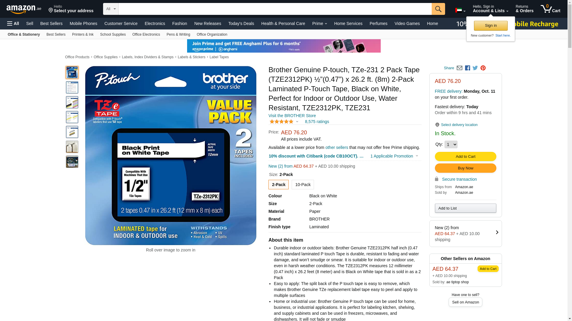 | Feature | Quantity 3 of TZe2312PK, total 6 tapes of TZe231 |
