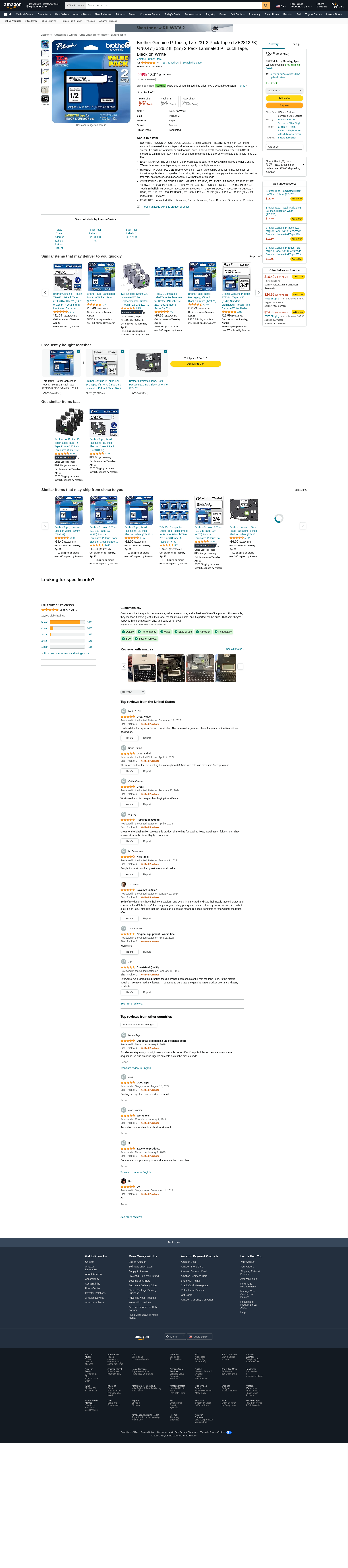 Brother Tze2312pk Laminated Labeling Tape,for Tz Models,1/2-Inch,2/Pk,Black/White