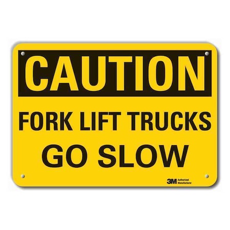 Reflective Lift Truck Traffic Caution Sign, Vertical Rectangle, Number of Printed Sides 1, English, Sign Format Traditional OSHA, Sign Legend Fork Lift Trucks Go Slow, Sign Legend Background Color Yellow, Sign Legend Style Text