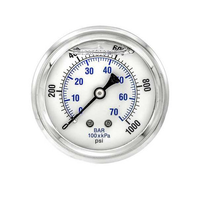 - SpecificationsDial: 2 1/2 (63mm)Range: 0/1000 psi/BAR (x100 = kPa)Case: Stainless steel, glycerine