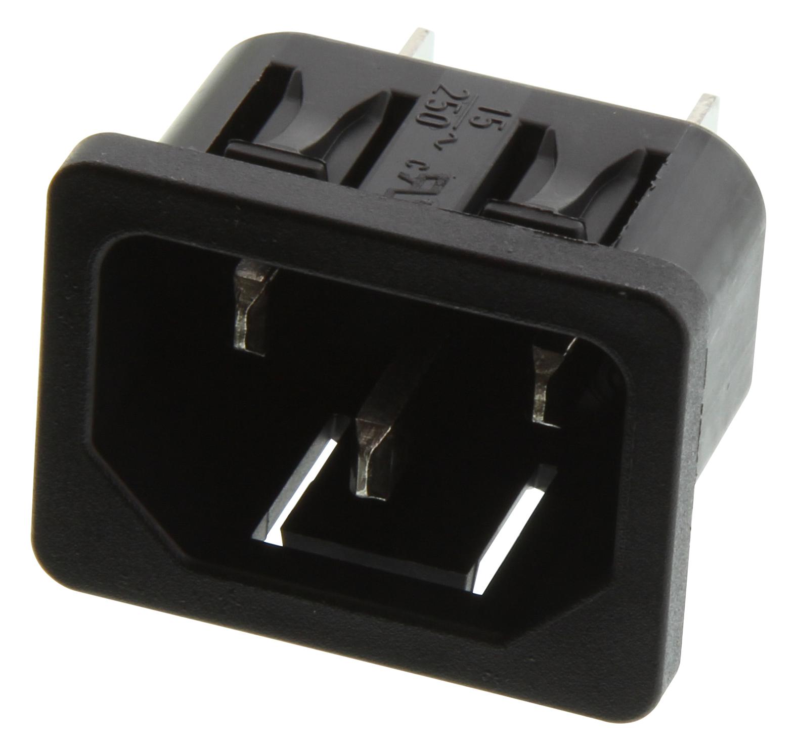 CONNECTOR, IEC POWER ENTRY, PLUG, 10A; IEC Connector Type:IEC C14 Inlet; Current Rating:15A; Voltage Rating:250VAC; Contact Termination Type:Quick Connect; Connector Mounting:Snap-In; Product Range:6100-4 Series; Connector Type:IEC RoHS Compliant: Yes