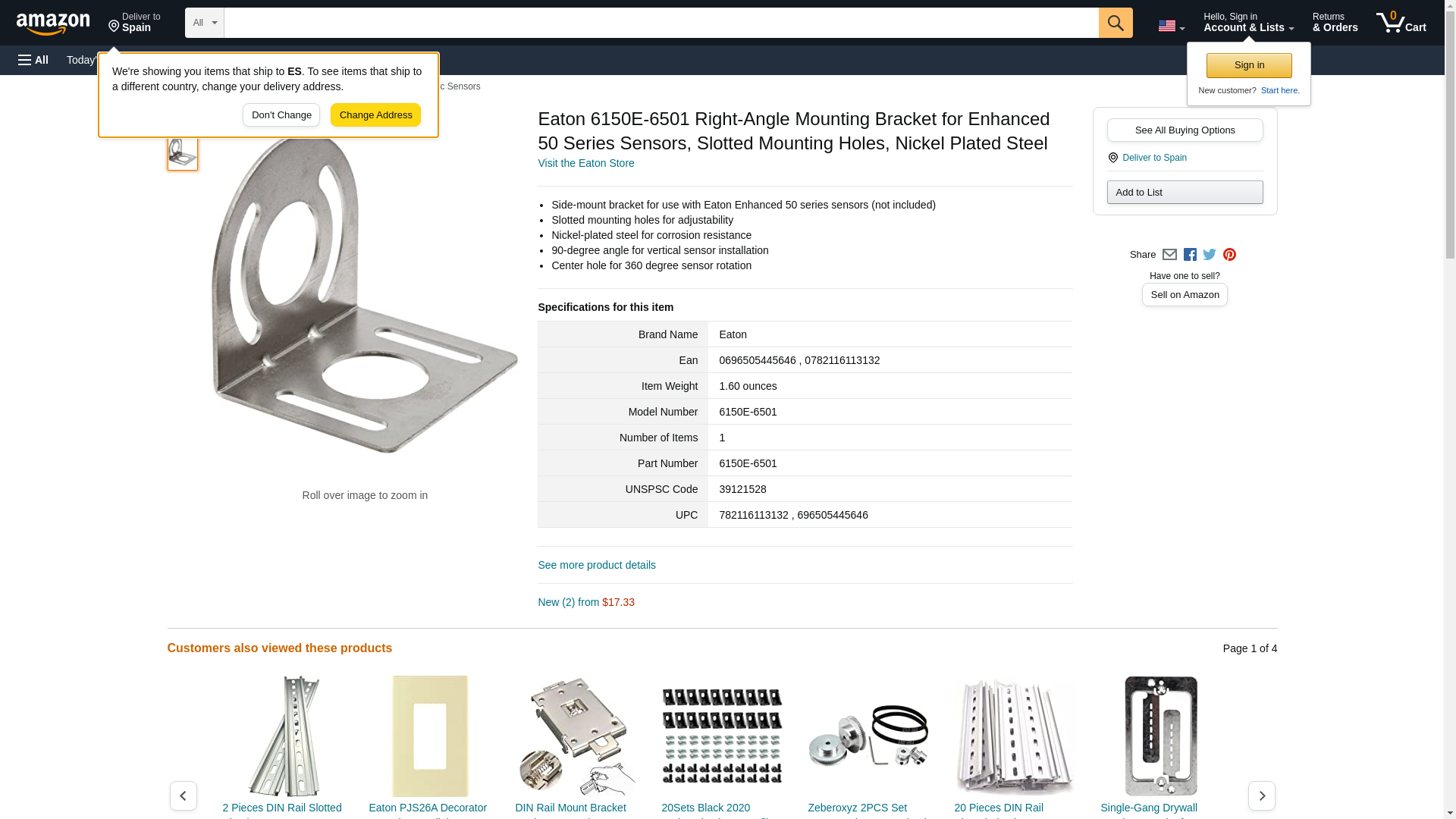 Eaton 6150E-6501 Right-Angle Mounting Bracket for Enhanced 50 Series Sensors, Slotted Mounting Holes, Nickel Plated Steel