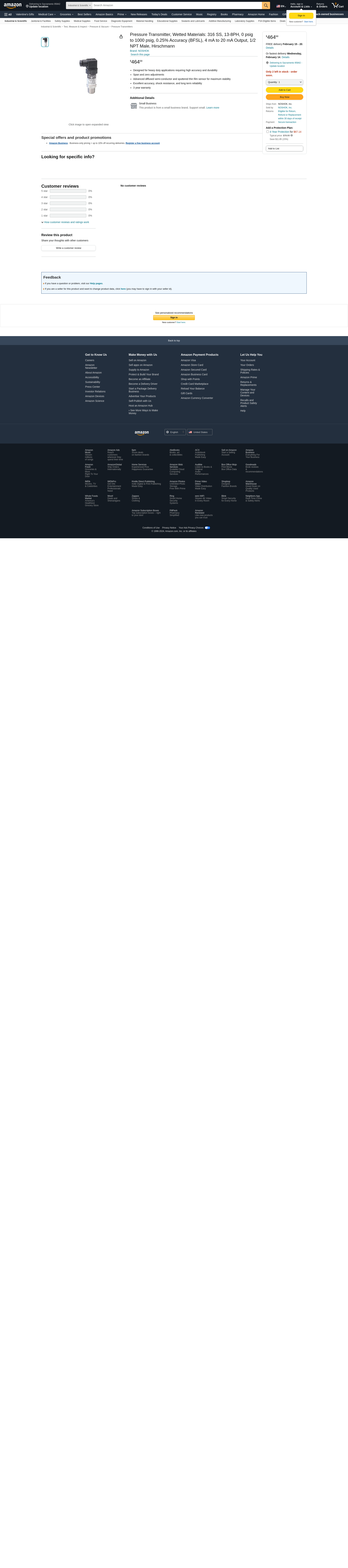 Pressure Transmitter, Wetted Materials: 316 SS, 13-8PH, 0 psig to 1000 psig, 0.25% Accuracy (BFSL), 4 mA to 20 mA Output, 1/2 NPT Male, Hirschmann