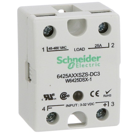 Schneider Electric/legacy Relay Ssr, Panel Mount, 480Vac, 32Vdc, 25A - 6425AXXSZS-DC3