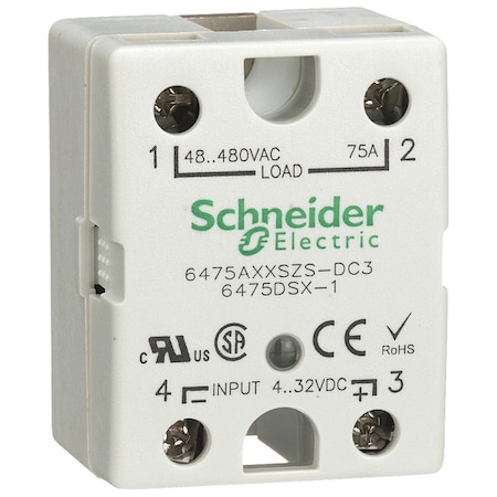 Schneider Electric/legacy Relay Ssr, Panel Mount, 480Vac, 32Vdc, 75A - 6475AXXSZS-DC3